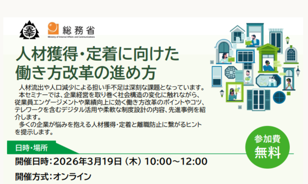 「人材獲得・定着に向けた働き方改革の進め方」にて弊社コンサルタント新井セラがコンサルタントが講師を務めます!