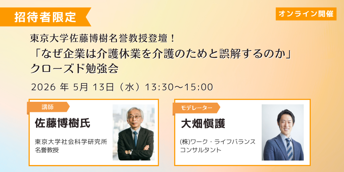 【招待者限定開催】東京大学佐藤博樹名誉教授登壇!「なぜ企業は介護休業を介護のためと誤解するのか」クローズド勉強会