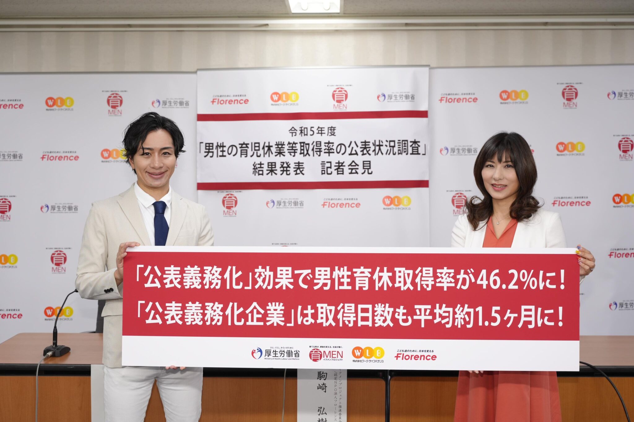 これらをうけ、2023年7月31日に、厚生労働省「イクメンプロジェクト」による「令和5年度男性の育児休業等取得率の公表状況調査」(以下「本調査」)の結果が公表され、本件に関する記者会見を厚生労働省にて実施しました。また同日、厚生労働省「令和4年度雇用均等基本調査」(以下「基本調査」)の結果もあわせて公表されました。