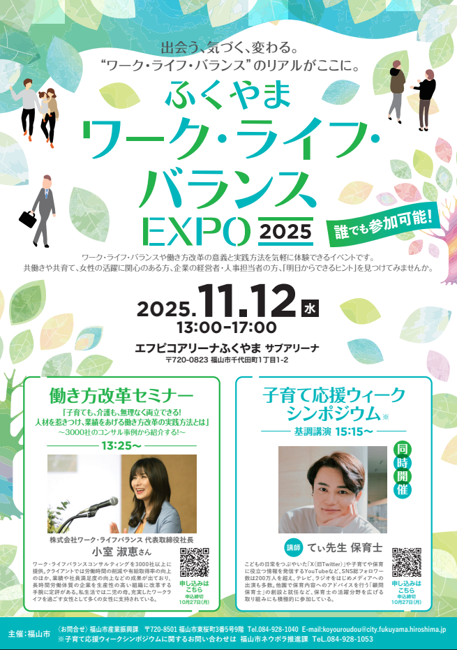 【参加者募集】2025年11月12日(水)13:00~17:00 「ふくやまワーク・ライフ・バランスEXPO」にて弊社代表取締役社長小室淑恵が基調講演に登壇します!