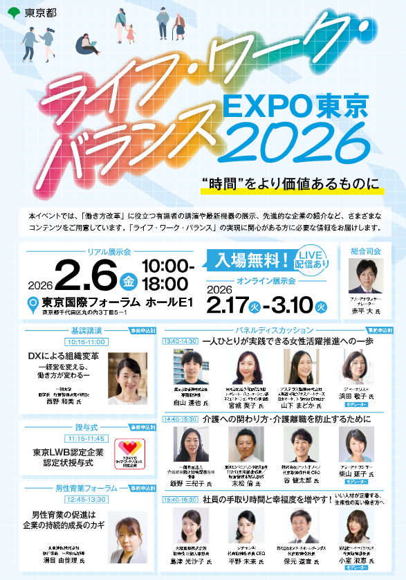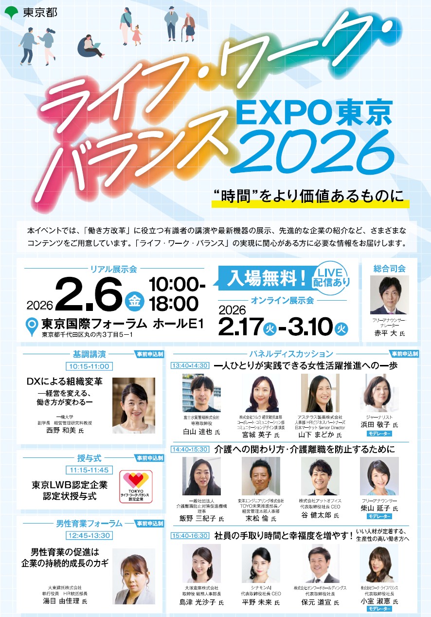 2026年2月6日(金)15:40~16:30 「ライフ・ワーク・バランスEXPO東京2026」にて弊社代表取締役社長小室淑恵がパネルディスカッションに参加します!