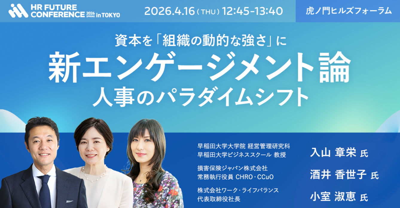 2026年4月16日(木)12:45~13:40 「新エンゲージメント論:資本を「組織の動的な強さ」に〜人事のパラダイムシフト」 に弊社代表取締役社長小室淑恵が登壇します!