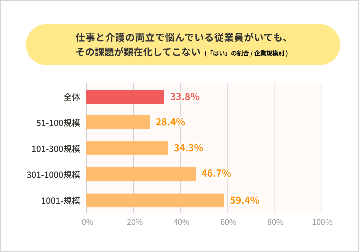 「自分の親にはいつまでも元気でいてほしい」と望む気持ちもあってつい目を背けてしまい、アンケート等にも「まだ大丈夫」という回答をされてしまいがちです。部署内では話してなんとか水面下でうまくやっているけれど、人事には言いたくない、言えない、という男性管理職がいることもあるあるです。