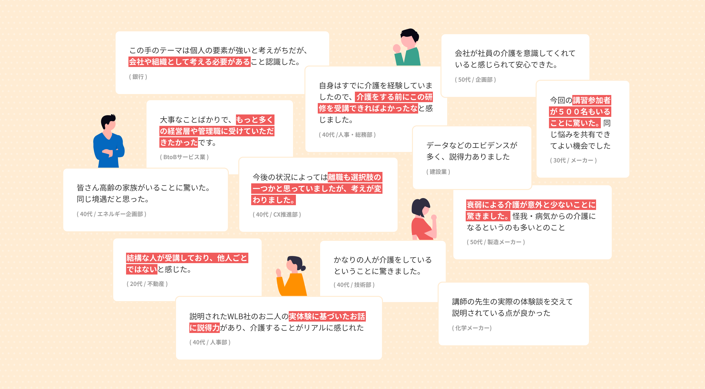 介護と仕事の両立と働き方に関して必要なインプットと支援を提供します。